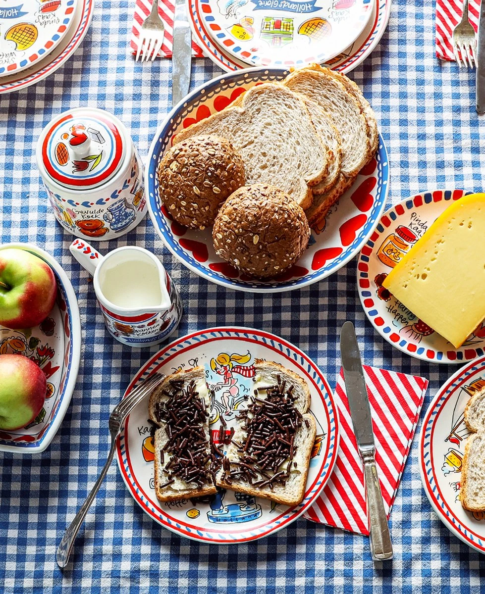 We love Holland! De nieuwe Hollands Glorie lijn van Blond Amsterdam is vormgegeven in frisse rood/wit/blauwe tinten en voorzien van typisch Hollandse illustraties. Op deze beker Holland staan illustraties van o.a. een tompouce, kaas en Rembrandt.