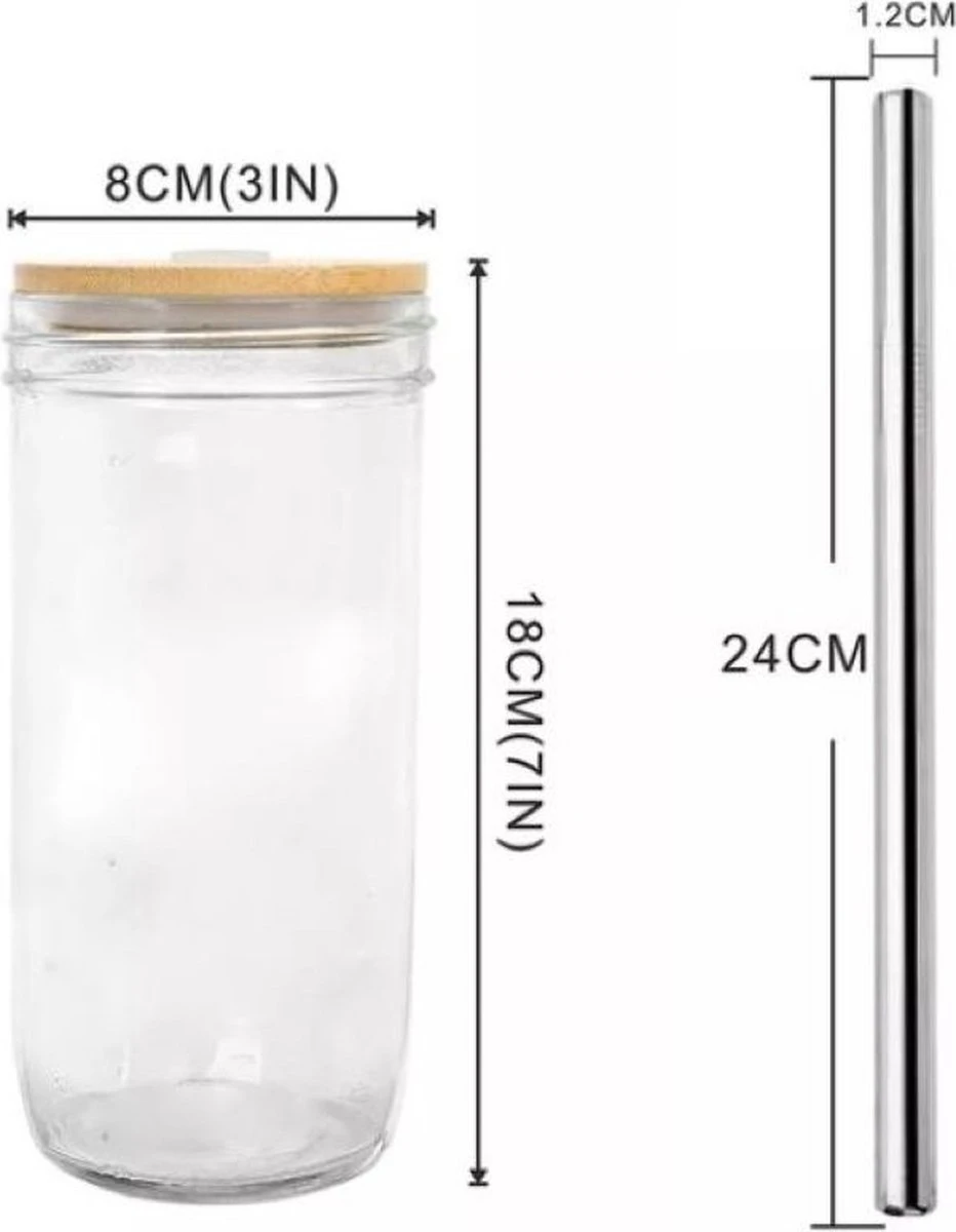 Mooie glazen Bubble Tea Beker. Met deze herbruikbare beker kun jij onbeperkt genieten van je zelfgemaakte of gekochte Bubble Tea! Deze beker is gemaakt van moeilijk breekbaar glas en komt met een mooi bamboe deksel. De beker wordt geleverd met een breed stalenrietje waar de bubble tea parels doorheen passen en een bijhorende schoonmaakset. Beker is geschikt voor de vaatwasser en de vriezer (voor extra koude bubble tea). Inhoud circa 500 ml