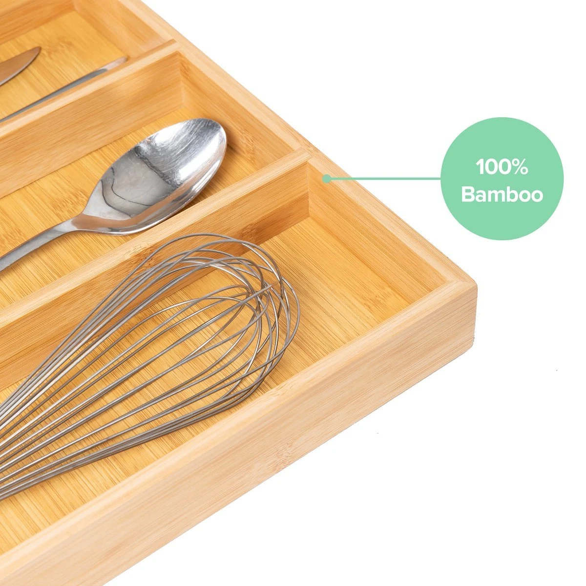 De bestekbak is zeer slijtvast door het zeer sterke bamboe hout en geeft een goede bescherming voor de voorwerpen die in de organizer geplaatst zullen worden. Bij de normale bestekbakken zal ongetwijfeld voorkomen dat de messen door het plastic heen prikken of dat de kwaliteit na enkele weken afneemt. Dit probleem heb je niet met de bamboe bestekbak.