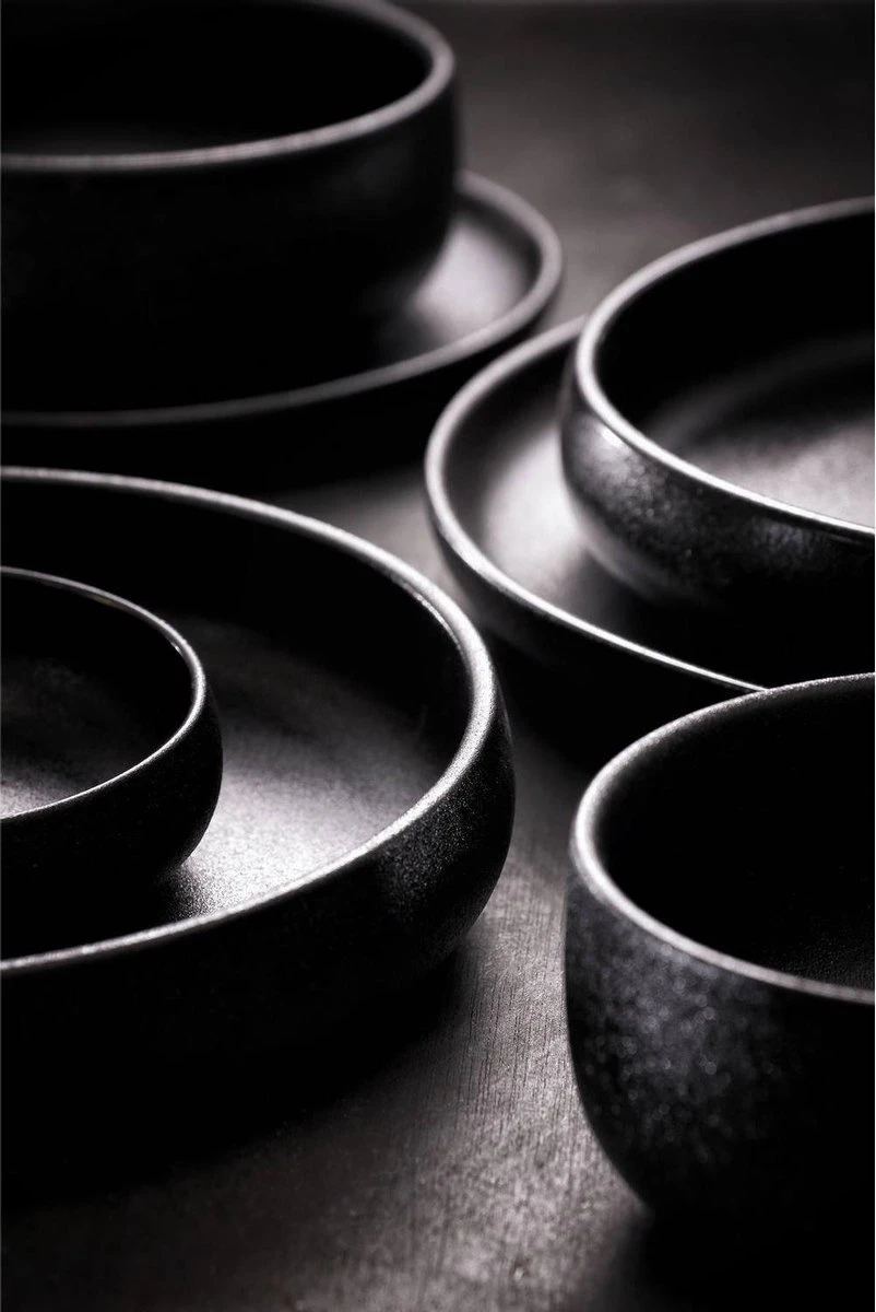 Een stijlvolle tafelsetting krijg je met deze porseleinen serie met mat zwarte kleur en ruwe afwerking. De ronde vormen en hoge rand zorgen voor een speelse twist. Deze serie is goed te combineren met de serie Cosmic. Na gebruik kan het bord gereinigd worden in de vaatwasmachine. Het diepe bord heeft een diameter van 21 cm.