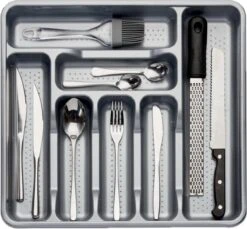 Kunststof Bestekbak/bestekhouder 7-vaks Grijs 42 X 39 Cm – Keukenlade/besteklade Inzetbakken
