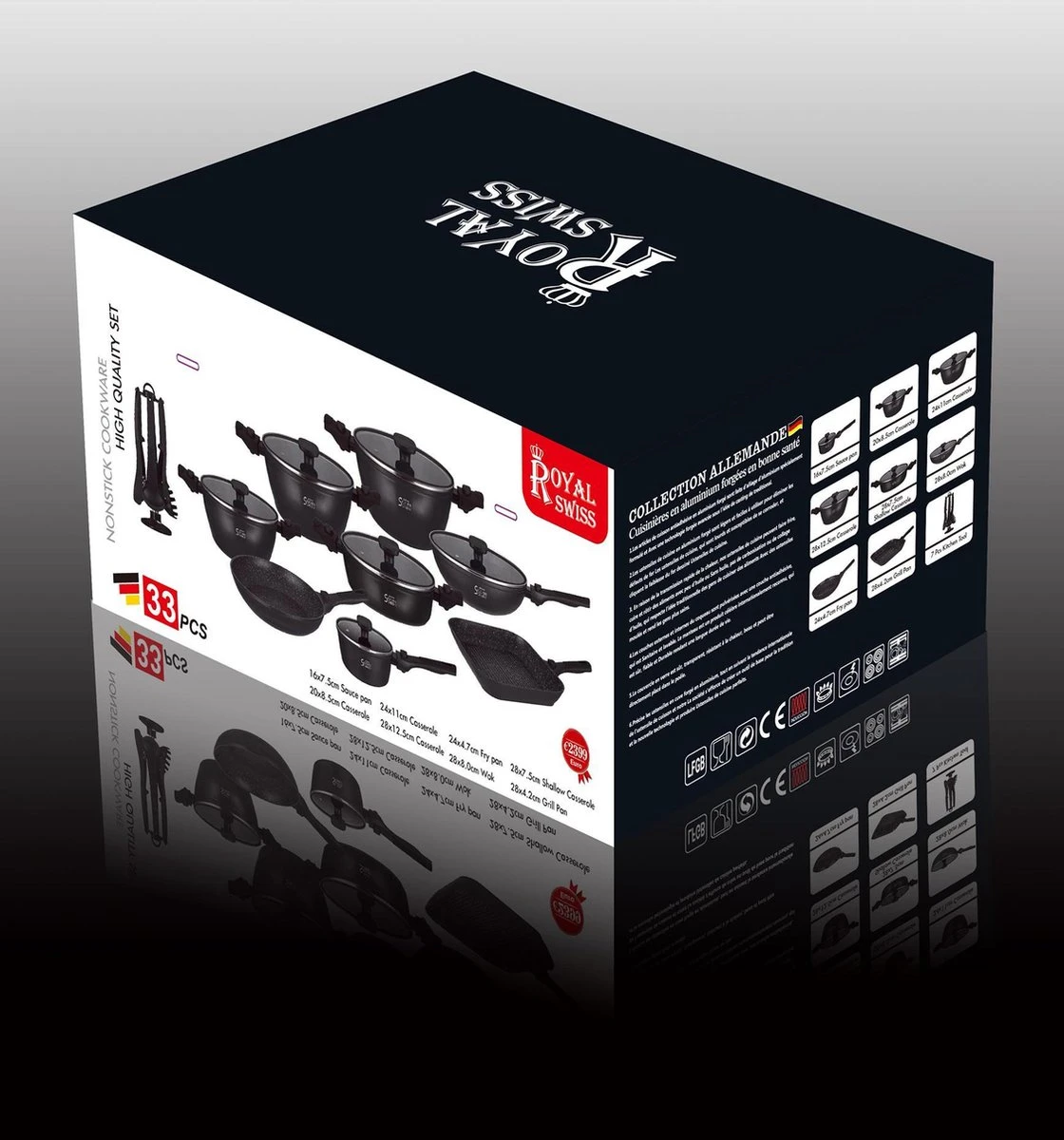 Royal Swiss® 33 Delige Pannenset + 1 set keukengerei op basis van 7 stuks GRATIS